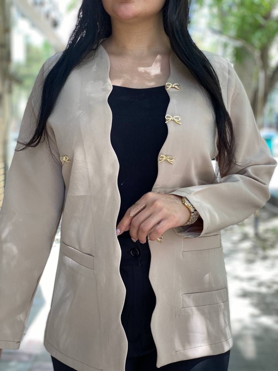 ادایی ترین کت خوشگلی که شبیهش هیچ جا نمیتونی پیدا کنی جنس پارچه : مازراتی درجه یک مدل یقه : هفت <پیش کار لایی پرشین جلوی ابشاری دکمه پاپیونی <جیب نما